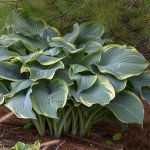 Потужний та красивий сорт хости. Висота рослини до 90см. Листя сіро - блакитне, з нерівномірною жовт..
